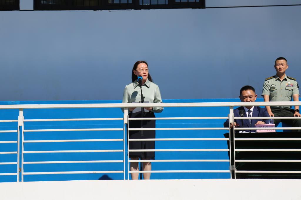 东梅代表学校为参加军训的同学们作了富有激情又颇具感染力的军训动员报告。她为同学们讲述了哈医大深厚的革命历史文化底蕴,她希望每一位医大新生,都应为自己的母校诞生在瑞金城,锤炼在长征路,成长在延河畔,驰骋在东北疆场,这样跌宕起伏又初心不改的气魄而自豪,更应该继承的是母校“救死扶伤,实行革命的人道主义”的初心使命,延续她时刻听从党和人民的召唤、全心全意为人民服务的红色基因。她希望同学们能够正确认识、深刻领会军训的意义,发扬吃苦耐劳的精神,不畏艰难,勇往直前,不当“草莓兵”“温室苗”,以饱满的热情、旺盛的斗志、顽强的毅力、威武的军姿、恢宏的气势来展示哈医大学子的勃勃生机和奋发向上的精神面貌,以积极的态度参与到军训中来。她要求学校与军训相关的各部办处,要从全心全意为学生服务的角度出发,发挥医学院校专业特色优势,重点提高学生与医学相关的综合素质和应急应变能力。全体教师要以高度的责任感和饱满的热情投入到工作中,全力配合教官高质量开展军训工作。