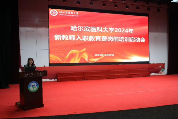 季勇以“走进哈医 共建百年医学强校”为主题,介绍了学校的发展历程和取得的标志性成果,分享了如何成为哈医大的好老师、好职工,并对新教师提出四点要求:一是严格遵守《新时代高校教师职业行为准则》及哈尔滨医科大学师德师风相关规章制度要求,规范自身言行,以自己的模范行为影响和带动学生成为德智体美劳全面发展的社会主义建设者和接班人;二是要保持终身学习的理念和习惯,增强对新知识、新事物、新问题、新技术的学习热情和好奇心,积极参加学校组织的各类培训,不断拓宽视野,促进职业能力提升,全面提升医教研管水平;三是在注重提高专业和教学能力的同时,要充分认识到团队协作精神、交流沟通能力、开拓创新精神、外语水平和突发事件处理能力对个人成长的重要性,促进自身全面发展,成为最好的自己;四是要牢记为党育人、为国育才的初心使命,自信自强、踔厉奋发,以赤诚之心、奉献之心、仁爱之心扎根三尺讲台,潜心教书育人,全力培育一流人才、创造一流成果,为建设百年医学强校,推动教育强国、科技强国、人才强国、健康中国建设贡献力量!