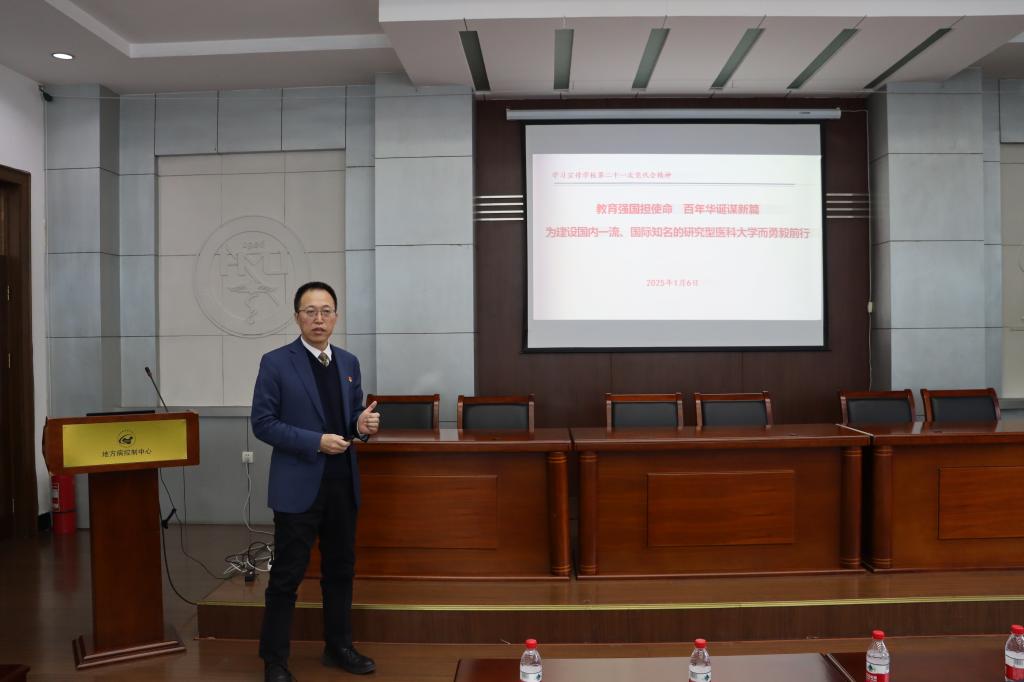 毕晓明在领学学校第二十一次党代会工作报告时指出,中国共产党哈尔滨医科大学第二十一次党员代表大会是在全校上下深入贯彻落实党的二十届三中全会、省委十三届六次全会和全国、全省教育大会精神,加快推进“双一流”建设、满怀豪情迎接百年校庆的关键时期,召开的一次十分重要的会议。工作报告回顾了二十次党代会以来学校在改革发展方面取得的主要成绩,分析了面临的形势,明确了指导思想,解读了学校未来发展目标、工作思路和主要工作任务。