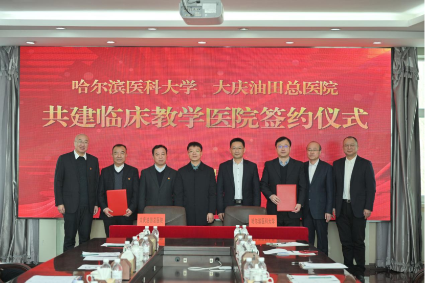 近日,学校与大庆油田总医院共建临床教学医院签约仪式在大庆油田总医院举行。校长季勇出席签约仪式并讲话,大庆油田总医院党委书记林波主持签约仪式。副校长许超千,大庆校区党委书记王晓星、校长乔远东,大庆市卫生健康委党委书记周万福出席签约仪式。