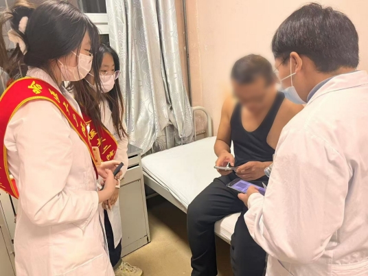 青年志愿者深入各住院部病房收集患者的建议和诉求,协助患者填写调查问卷,以问题为导向,助力提升患者满意度。