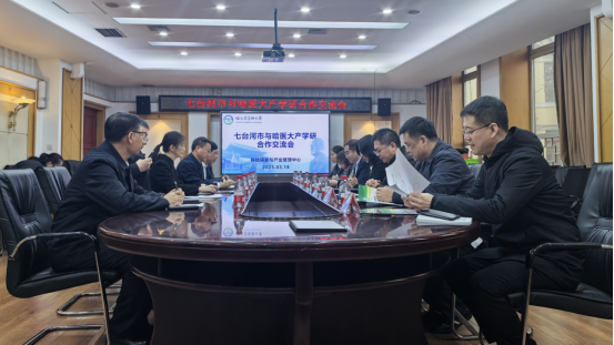 3月18日上午,七台河市科技局局长赫英华、茄子河区姜明书记等一行六人赴哈尔滨医科大学开展产学研合作交流,双方围绕科技创新、成果转化及校企合作展开深入探讨。