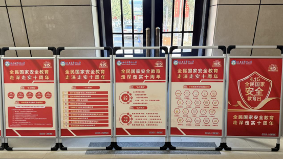 学校在主楼、图书馆、学生公寓、学生食堂等点位,全方位、多角度展示国家安全教育宣传内容,营造浓郁的宣传氛围;通过官微推送,引导师生积极关注国家安全教育的内容,使大家深刻认识到国家安全与每个人息息相关,自觉增强安全防范意识,做国家安全的守护者。