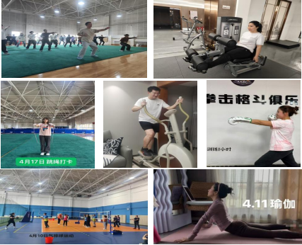 学生工作各位老师化身健身达人!在校园掀起健身热潮!体育馆里八段锦动作规范;跳绳声此起彼伏;气排球活力四射;健身房动感操音乐魔性十足;连下班后回家休息都有人偷偷“卷”起了拳击和椭圆机!健身打卡群里,每天晒运动打卡照,从晨跑到撸铁,从瑜伽到跳绳,分享交流营养食谱和运动心得,卷起健身风潮。