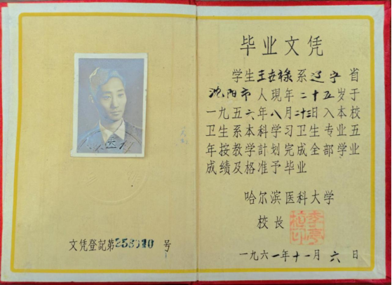我校卫生专业本科(简称卫本)一期入学时间是1951年,毕业时间为1957年8月30日。1954年入学的为卫本二期,1955年入学的为卫本三期。上图为我校卫本四期学生毕业证,入学时间是1956年8月23日,毕业时间是1961年11月6日。