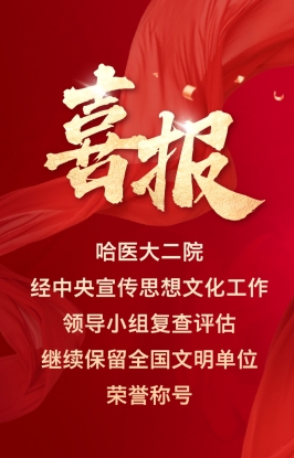 5月23日,中央宣传思想文化工作领导小组发布中央宣传思想文化工作领导小组关于复查确认继续保留荣誉称号的全国文明城市、文明村镇、文明单位、文明家庭、文明校园的通报,继续保留哈医大二院全国文明单位荣誉称号。