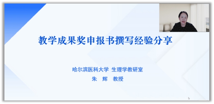 8月6日,由高评中心主办的“喜迎百年校庆 教学成果奖申报系列讲座”第三场在线上顺利举办。继前两场聚焦专业人才培养、师资建设维度后,本场特邀生理学教研室主任朱辉教授,以生理学课程省级一等奖成果为切入点,分享教学成果奖申报书撰写的实践经验,吸引众多教师参与,持续拓宽教学成果申报思路。