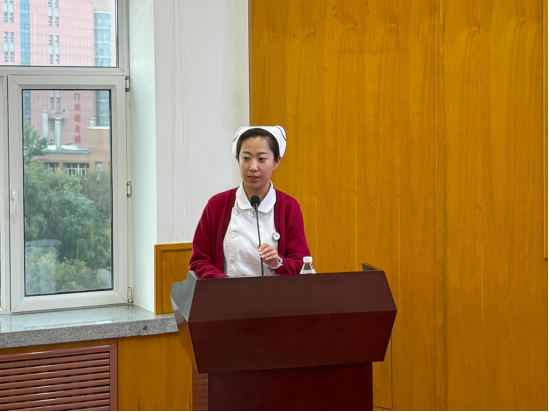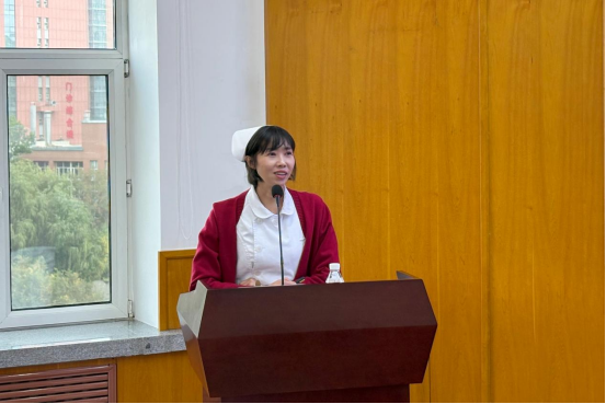 胸部放疗一、四病房护士长高巍以《热爱为灯,执匠心前行》为题,讲述扎根临床十六年的职业经历。从主动请缨奔赴抗疫一线,到积极开展护理健康教育、投身科普公益,再到精心培育护理团队、凝聚团队战斗力,她用一个个生动案例诠释了“敬佑生命、救死扶伤、甘于奉献、大爱无疆”的职业精神,展现了新时代女性护理工作者的坚韧与智慧,赢得了在场听众的阵阵掌声。