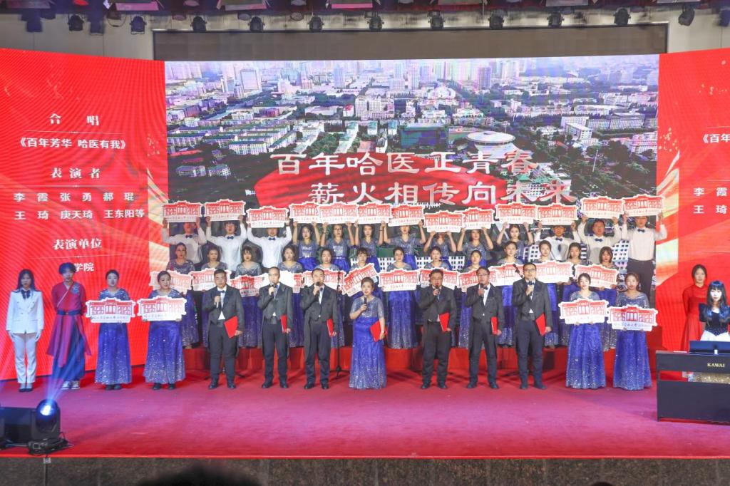 药学院《百年芳华 哈医有我》、地病中心的诗朗诵《有这样一支队伍》、生物信息科学与技术学院的歌伴舞《灯火映医心 薪火共相亲》,深情讴歌了一代代哈医人的使命担当;