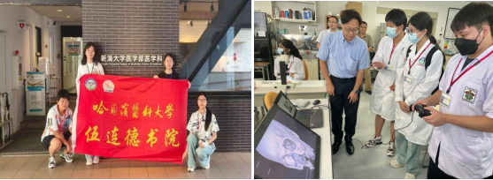 新潟大学学生在哈尔滨医科大学访学期间,参访基础医学院和第二临床医学院等科室,进行相关疾病诊疗、外科查房和手术观摩等实践活动,同时,参观伍连德纪念馆并与中方学生进行学术与文化交流。