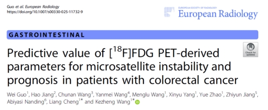 近日,哈医大肿瘤医院PET/CT-MR中心王可铮教授团队的研究成果在国际高水平放射学期刊——欧洲放射学《European Radiology》(JCI一区,中科院二区TOP)重磅发表。该研究基于多中心临床数据,深入探讨结直肠癌(CRC)患者术前PET衍生代谢参数对病灶微卫星不稳定性(MSI)状态的无创预测价值,并通过MSI状态开展亚组分析,进一步评估了PET衍生参数在术后疾病进展中的预后分层作用。