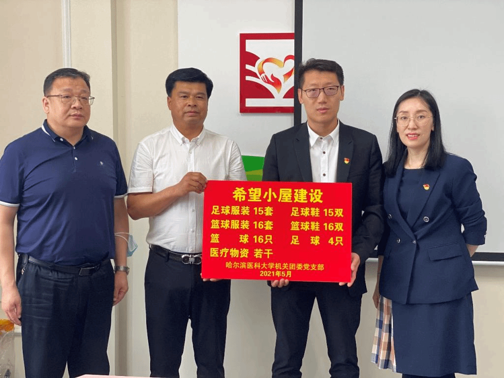 爱心公益活动是社会精神文明建设的重要内容,需要传承和发扬,设立“希望小屋”就是为了弥补偏远地区学校在“第二课堂”教育资源方面的不足,为有需要的孩子们捐建电脑视频器材、体育器材等,这也是机关团委党支部落实“我为群众办实事”的重要举措之一。当天哈尔滨医科大学团委书记王曦和团委全体成员出席了捐赠仪式,为呼兰区二八中心小学捐赠15套足球服装、16套篮球服装、15双足球鞋、16双篮球鞋、4个足球、16个篮球和若干医疗物资,助力希望小屋建设。
