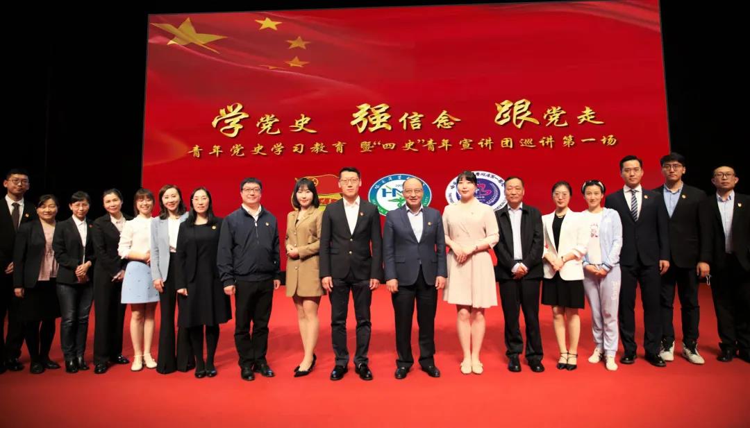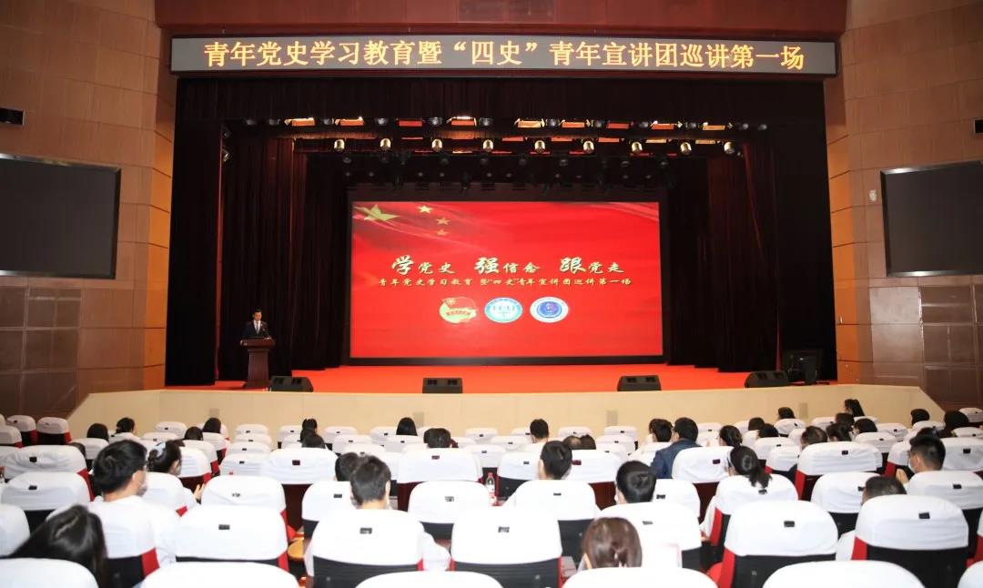 为庆祝中国共产党成立100周年,讴歌党的丰功伟绩,深情回顾党的奋斗历史,引导广大青年坚定不移听党话、跟党走,6月1日下午17:30,青年党史学习教育暨“四史”青年宣讲团巡讲第一场在哈医大一院学术报告厅召开。在建党百年之际,哈尔滨医科大学“四史”青年宣讲团成员走进哈医大一院进行党史学习教育宣讲,让广大青年师生从党史中汲取红色力量,补足精神之钙。