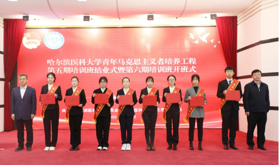 校团委书记王曦宣读《关于表彰哈尔滨医科大学青年马克思主义者培养工程第五期培训班优秀学员的决定》,赵光副校长、许超千副校长为第五期青马优秀学员代表颁奖。