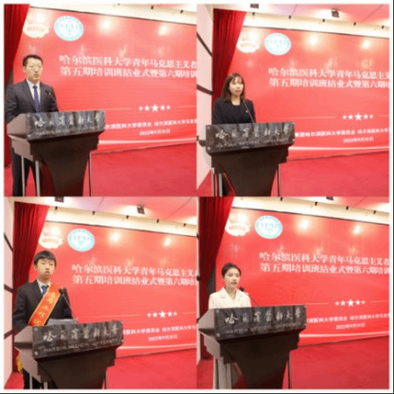 第六期青马工程学员代表,2021级人文社会科学学院法学专业林鑫发言时表示,很荣幸能够成为青马培训班的一员,自己将学以致用,知行合一,弘扬哈医大“木直中绳,博学载医”校训,努力成长为一名“有理想、善学习、讲道德、要自立、勇奋斗”的青年马克思主义者。