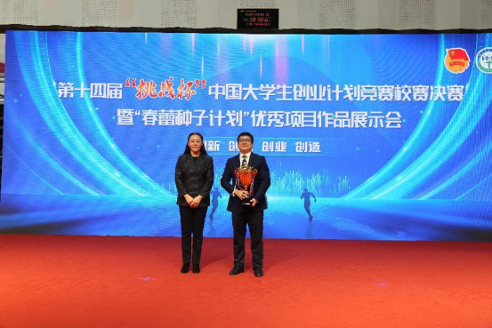学校团委王曦书记为获得二等奖的项目颁奖