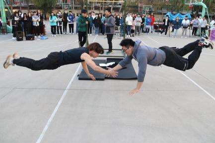 篮球场上,FD-crew街舞协会舞步激扬,和着动感的节拍,带动着场上所有人挥舞手臂,摇晃出《ping pong》的节奏。