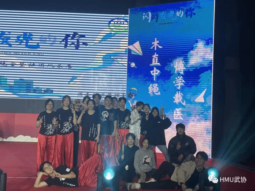 我校武术协会成立至今不仅多次获得奖牌社团的称号,还在历届省武术比赛中获得团体前三名的优异成绩。日复一日的刻苦训练是我们的常态,馆里常亮的灯光,空气中的红花油的气味,因训练而流下等汗水在不经意间反射出来的光亮像是星火,细微但足够炙热。在师兄师姐的带领下,大家可以站在各种各样的舞台表演:游园会、风采展、元旦晚会,国际晚会等,让更多的朋友感受武术魅力。