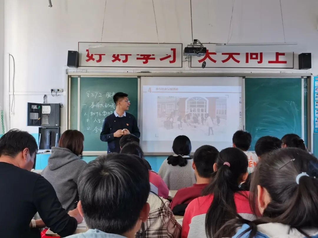 支教教师的基本功十分重要,这关乎着每一位学生的未来。在刚刚过去的十月末,我迎来了作为支教教师的第一次考核--公开课。在得知学校要举行全校公开课评比的消息后,我第一时间报上了名字,也是想在这样的活动中多多向前辈老师们学习,也希望收到老师们的批评指正,让自己在教学经验上更加丰富。我选择了初二《道德与法治》的《服务社会》这一课,选择它我也是有着自己的小私心。我作为一名志愿者,来到乡村支教也是诸多服务社会形式中的一种,我也是想通过自己的亲身实例,鼓励同学们努力学习,为日后服务社会,奉献爱心不断蓄积力量。根据课程标准,这一节课中,我们将向同学们介绍共青团这一先进的群团组织,初二的孩子刚刚踏入青年的大门,对于未来充满了未知与期待,在课上,我向孩子们展示了共青团组织领导的品牌活动与诸多志愿服务活动,他们也表现出了向团组织靠拢的踊跃积极性。课上,我勉励学生们要勇担责任,热爱劳动,努力学习,扎实基本功,心怀家国情怀与赤子之心,做新时代的接班人。公开课的效果超出了我的想象,孩子们的倾力配合与我的讲授完美结合,公开课也得到了学校领导老师的认可,获得了“共和乡中心学校新课程教师研讨会”的一等奖。有了师长前辈的认可与鼓励,我也定将在日后的课堂中,继续把外面广阔的世界与丰富多彩的大学生生活分享给我的学生们,鼓励他们同老师一道,满怀书生气,抒发报国意。