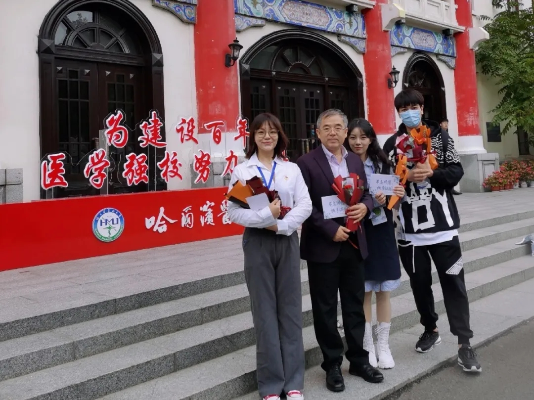 在第三十六个教师节到来之际,哈尔滨医科大学学生会、研究生会的学生代表,向各位老师送上鲜花、贺卡和节日祝福,祝各位老师节日快乐,幸福安康!