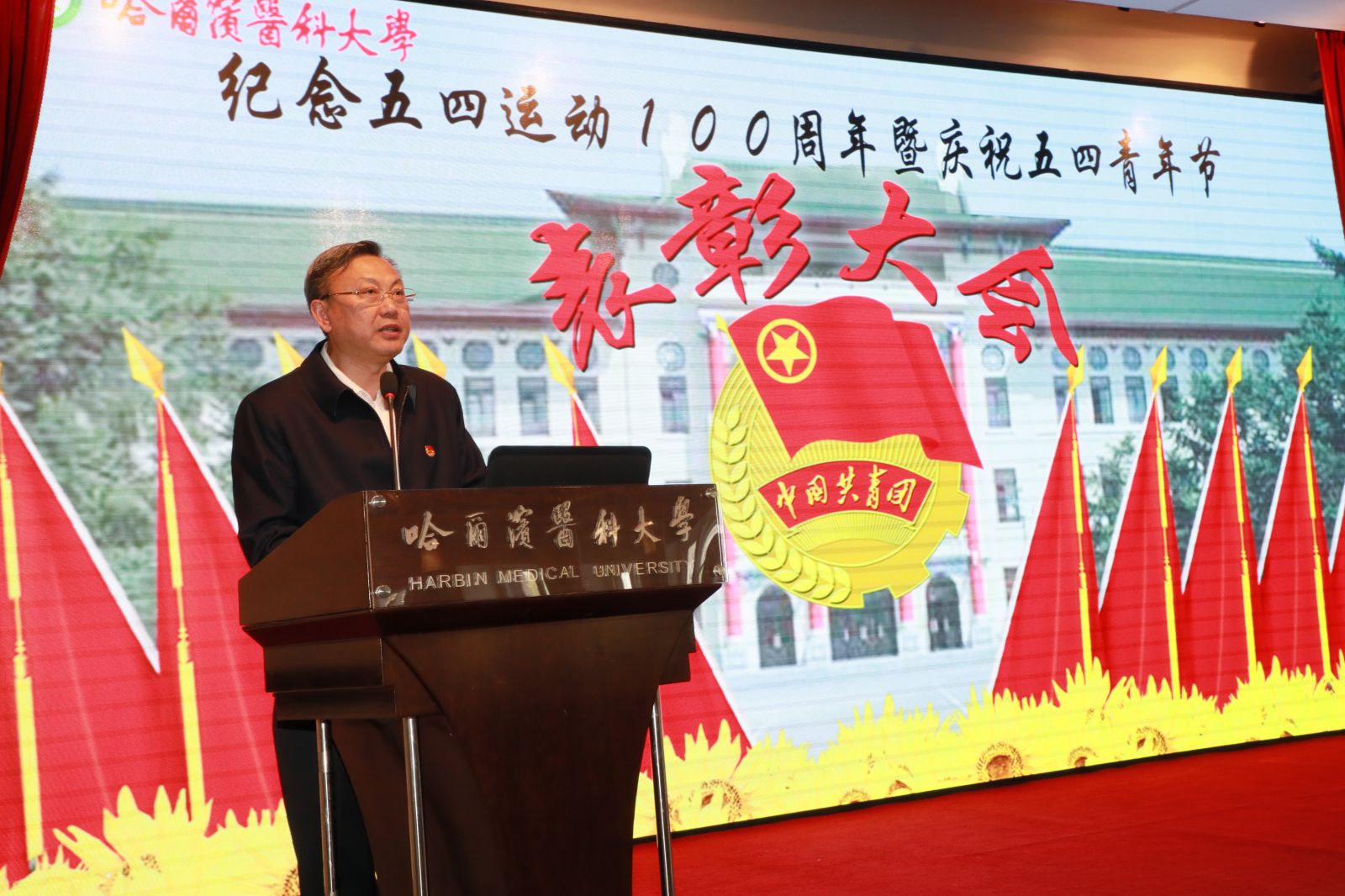 筑梦新时代,奋斗正青春。在全国上下齐心抗疫的特殊时期,为庆祝五四运动101周年,引导广大团员青年传承和发扬五四精神,5月3日上午10点,哈尔滨医科大学纪念五四运动101周年暨庆祝五四青年节线上表彰大会在学校教学实验楼六楼,以“智慧教室+腾讯会议”的形式成功召开。学校党委书记张斌、校长张学和学校党政领导、学校各部办处有关领导、各学院党委主要领导、团干部和青年代表300余人参加了此次表彰大会。大会由校团委书记王曦主持。
