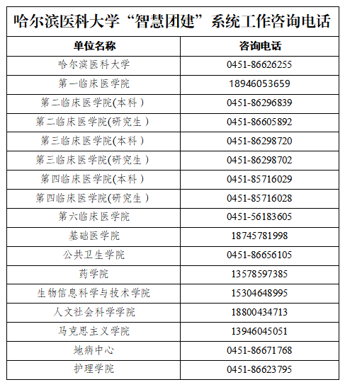 13.哈尔滨医科大学“智慧团建”系统工作咨询电话