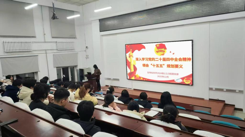 为深入宣传贯彻国家“十五五”规划精神,引导广大青年学子深刻认识时代责任与历史使命,将个人发展融入国家发展大局,生物信息科学与技术学院团委于2025年11月29日至12月8日期间,组织全院各团支部集中开展了“奋进‘十五五’ 青春挺膺担当”主题团课学习与研讨活动。本次活动覆盖面广、参与度高、形式灵活、讨论深入,取得了良好的育人实效。现将具体情况总结如下: