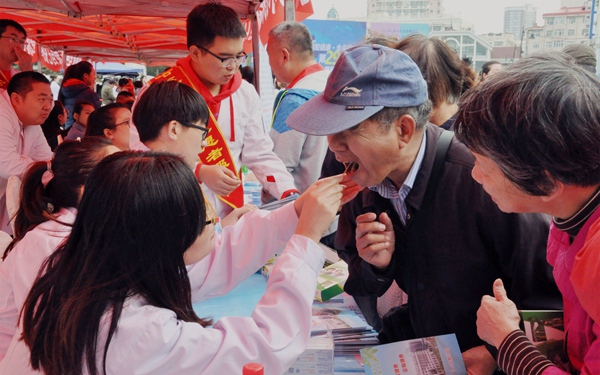 口腔医学院选派口腔颌面外科、口腔修复科、牙体牙髓病科、牙周病科等专家党员团队在赠送口腔保健用品和宣教资料的同时,为百姓解答各种爱牙护牙的专业知识,进行现场检查和制定治疗方案;学生志愿者们围绕“口腔健康”主题,通过文艺汇演活动,将口腔保健知识融入到百姓喜闻乐见的形式之中,加深居民对口腔健康知识及口腔保健行为的了解,摒弃不良口腔习惯和错误的认知,把口腔诊疗服务深入到全市中心,帮助市民掌握口腔健康知识和技能,养成有利于口腔健康的生活习惯。