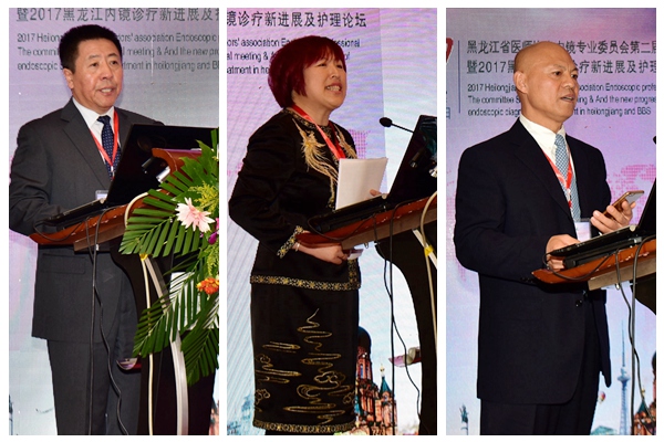 开幕式上,哈医大附属肿瘤医院副院长曲国蕃和黑龙江省医师协会副会长王太和、副秘书长薛东明等领导到会致辞,他们充分肯定了省医师协会内镜专委会成立一年来的工作成绩,同时号召全省广大同行紧密团结起来,搭建好临床研究平台,坚持规范化培训,进一步提升基层医院内镜诊治水平,在医改的大潮中把握住时代脉搏,更好地服务于人民大众。
