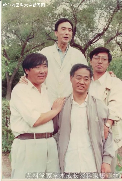 1996年夏求明七十大寿时,他的三位心脏移植患者齐聚医院为夏求明贺寿,前排左起:杨玉民、赵传军、于文峰
