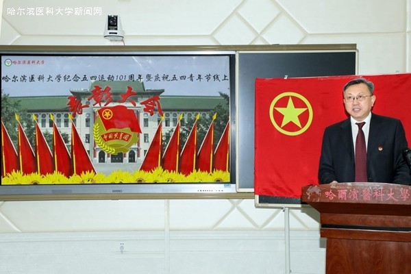 筑梦新时代,奋斗正青春。5月3日10点,哈尔滨医科大学纪念五四运动101周年暨庆祝五四青年节线上表彰大会在学校教学实验楼六楼以“智慧教室+腾讯会议”的形式成功召开。学校党委书记张斌、校长张学和学校领导班子成员、有关部办处领导、各学院党委主要负责同志、全校团干部和青年代表300余人参加了表彰会。会议由校团委书记王曦主持。