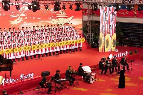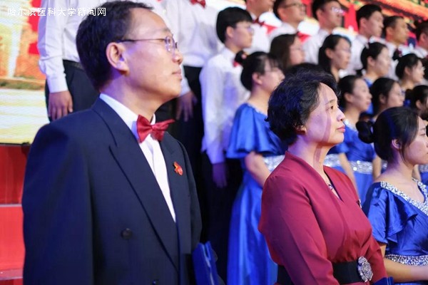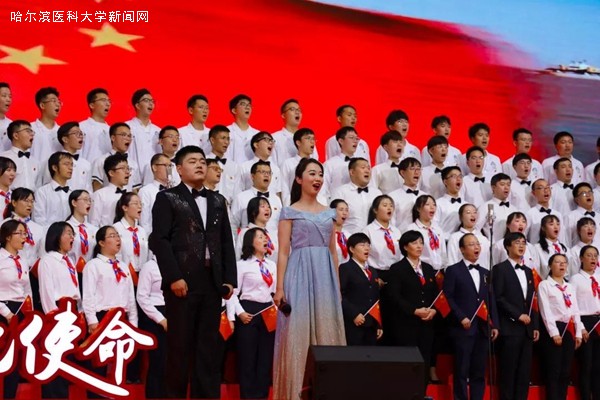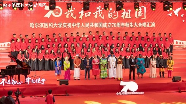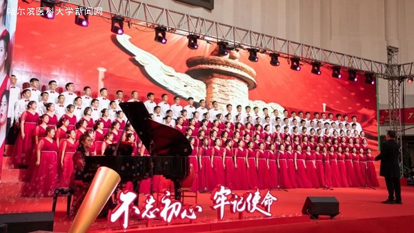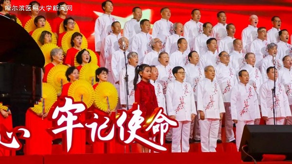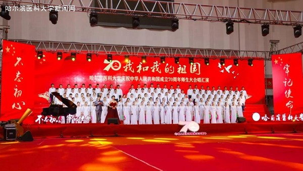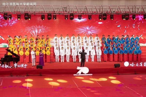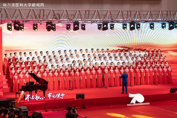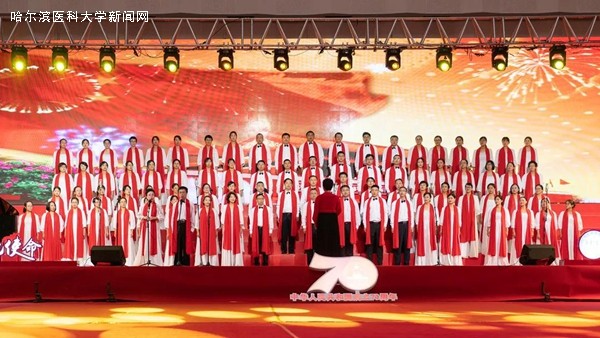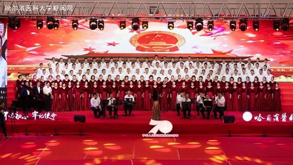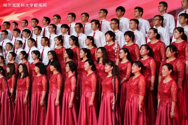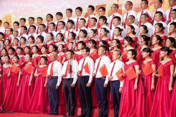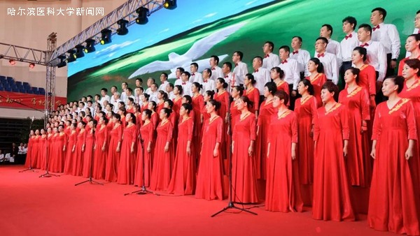 优美的旋律,激昂的歌唱,抒发着哈医大人对祖国母亲的无限热爱与真诚祝福,展示着哈医大人始终牢记教育报国初心,勇担立德树人使命,为实现百年医学强校、建设国内一流、国际有影响的医科大学而不懈奋斗的信心和决心,表达了哈医大人为实现健康中国、健康龙江攻坚克难、勇攀高峰的执着与奉献。走进新时代,全校教职员工将更加紧密地团结在以习近平同志为核心的党中央周围,高举中国特色社会主义伟大旗帜,认真学习贯彻习近平新时代中国特色社会主义思想,深入落实立德树人根本任务,不断提高办学水平,不忘初心、牢记使命,为龙江全面振兴、全方位振兴贡献力量,为祖国70华诞献礼。