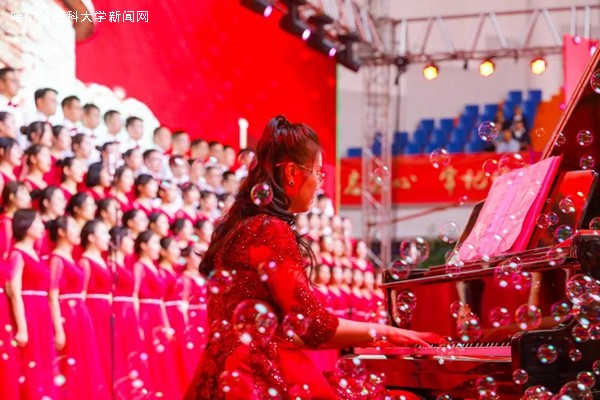 学校领导班子及各学院领导班子带领职工高唱盛世赞歌。校领导班子成员带领机关干部同声齐唱《共和国之恋》《祖国万岁》,用高昂的歌声表达对党的忠诚,对祖国的热爱。