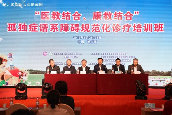 培训班邀请了国内著名孤独症诊疗专家就孤独症早期筛查、诊断的规范化诊疗技术、孤独症康复教育的新理念以及如何建立规范的孤独症定点康复机构等内容进行了广泛交流与培训,特别强调诊断及其干预的规范化理论和实践技术,使参会人员获得儿童孤独症的规范化诊疗、干预的能力,更好地应用于临床和孤独症康复服务。中国妇女发展基金会、全国孤独症儿童家庭关怀行动项目办郭海良主任、哈尔滨医科大学校长张学教授、黑龙江省残疾人联合会王晓兵副理事长、黑龙江省卫生健康委杨杰处长、黑龙江省教育厅高汉东处长出席了开幕式并分别致辞。我校儿童发育行为研究中心主任武丽杰教授主持了开幕式。