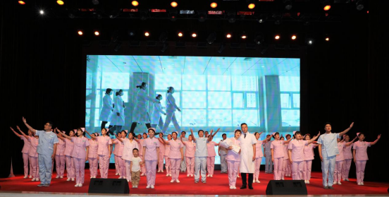 大会在《中国护士之歌》欢快的音乐声中落下帷幕。院领导和全体演职人员合影留念。