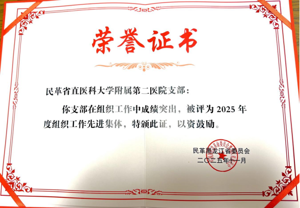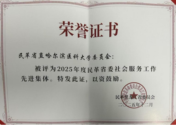近日,民革黑龙江省委员会发布《关于表彰民革黑龙江省2025年度组织工作先进市级组织、先进集体、先进个人的决定》,对一年来在各项工作中表现突出的集体与个人予以表彰。我校民革省直哈医大委员会荣获“2025年度民革省委社会服务工作先进集体”称号,民革省直哈医大二院支部荣获“2025年度民革省委组织工作先进集体”称号,民革省直哈医大委员会主委宋科官荣获“2025年度民革省委组织工作先进个人”称号。